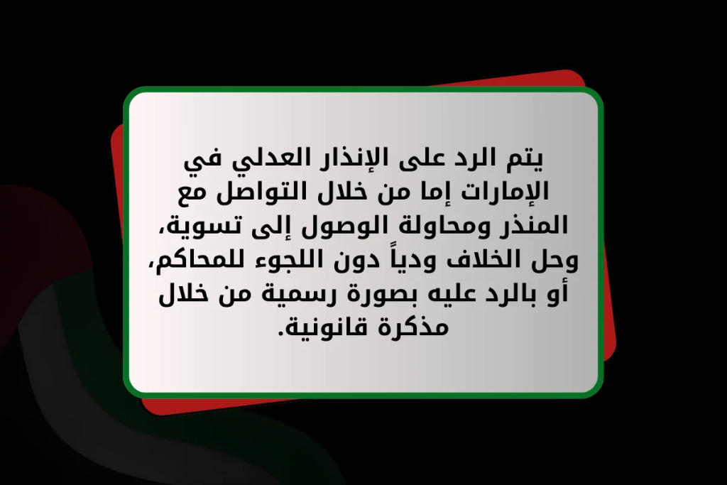 إنذار عدلي موجه بواسطة كاتب العدل في محكمة دبي