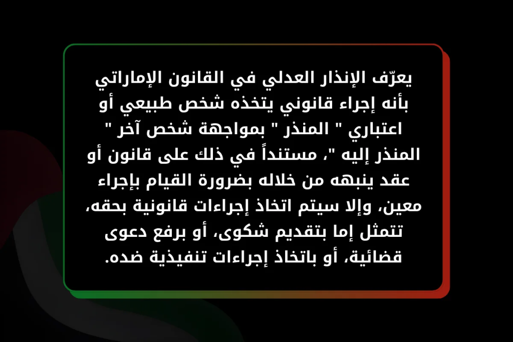 ويمكننا تعريف الإنذار العدلي في القانون الاماراتي، بأنه: