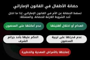 • دعوى إسقاط حضانة الاطفال بالقانون الاماراتي. ويقيمها من له مصلحة في ذلك بمواجهة الحاضن لإسقاط الحضانة عنه.