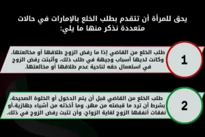 يحق للمرأة أن تتقدم بطلب الخلع بالإمارات في حالات متعددة نذكر منها ما يلي: